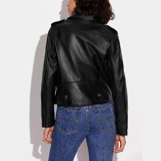 Women Black Biker sheepskin leather Jacket
