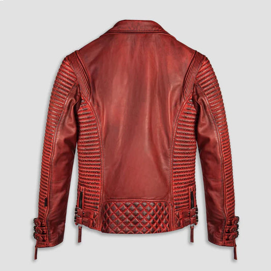 Men Red Waxed Biker Leather Motorcycle Jacket