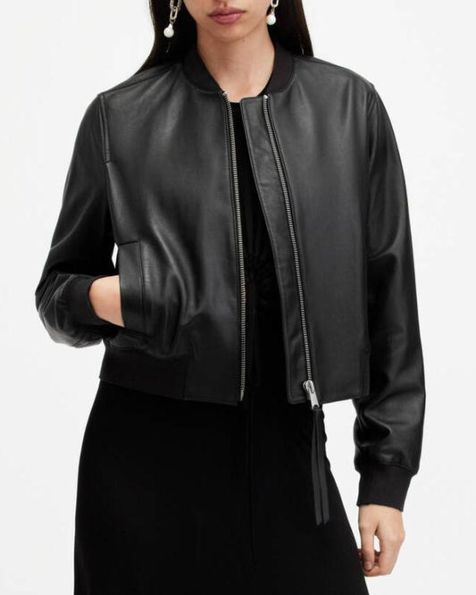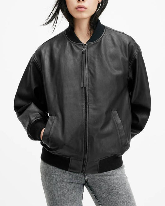 Women's Leather Bomber Jacket