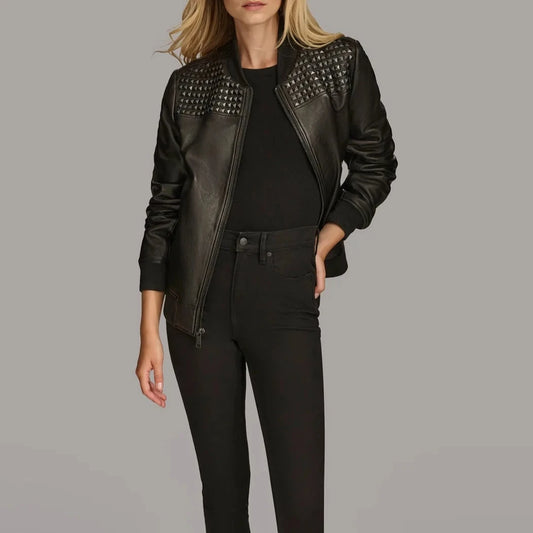Studded Bomber Jacket for Women