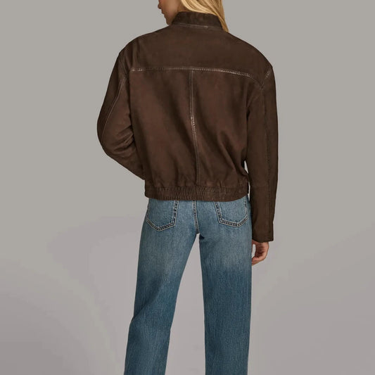Dark Brown Leather Bomber Jacket for Women