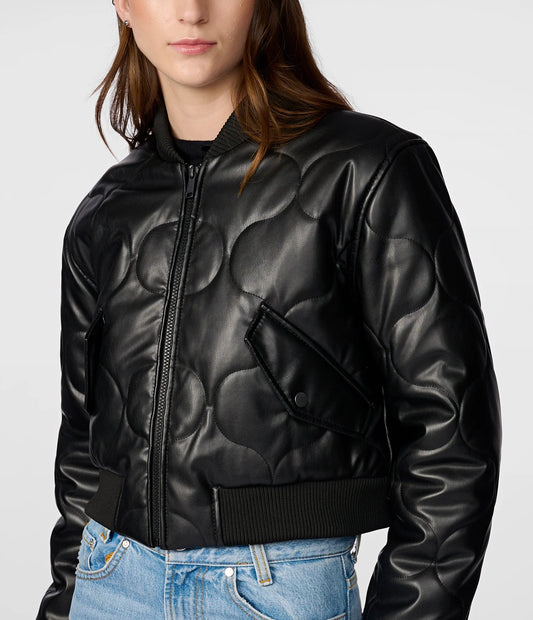 Leather Quilted Cropped Bomber Jacket for Women