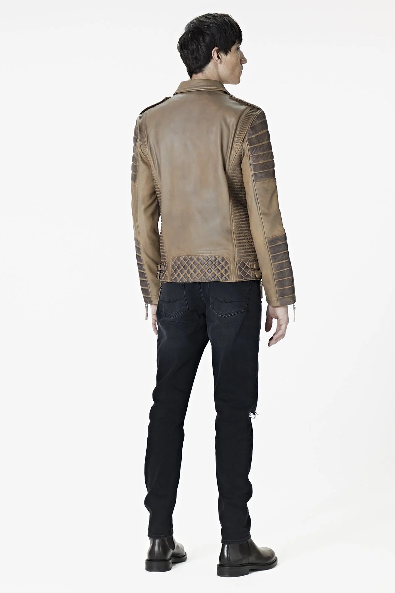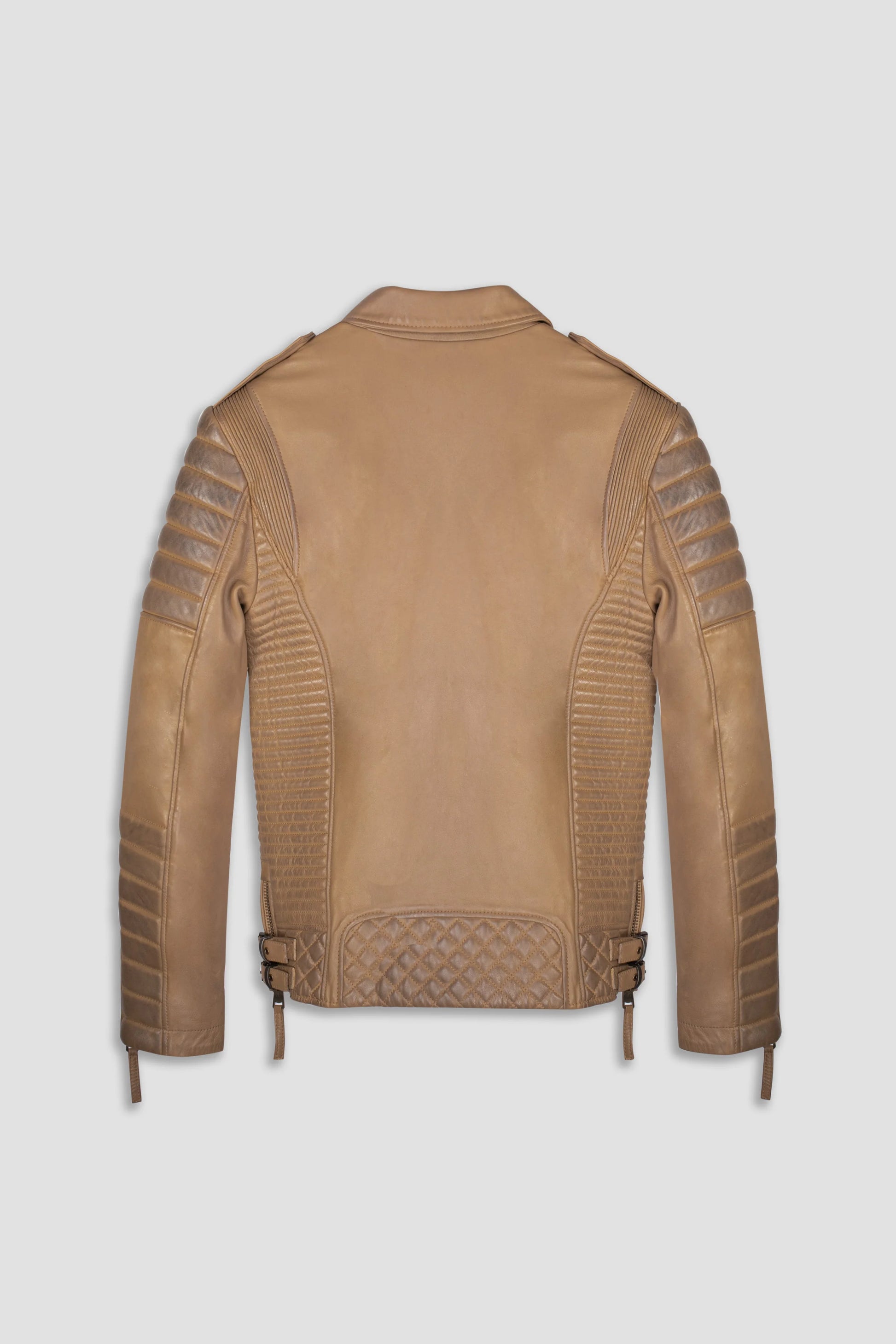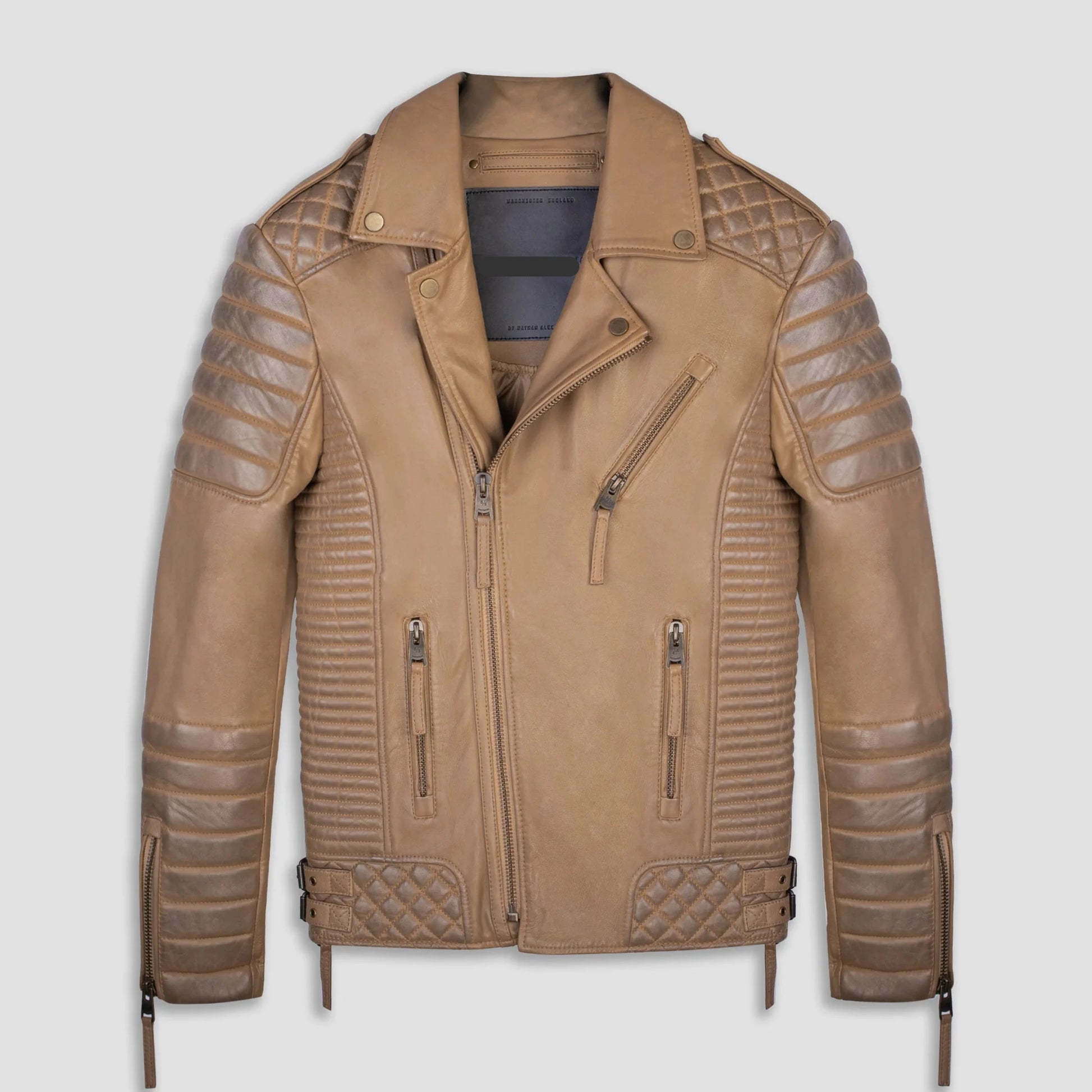 Desert Brown Waxed Biker Leather Motorbike Jacket