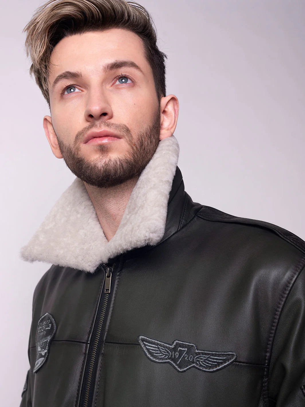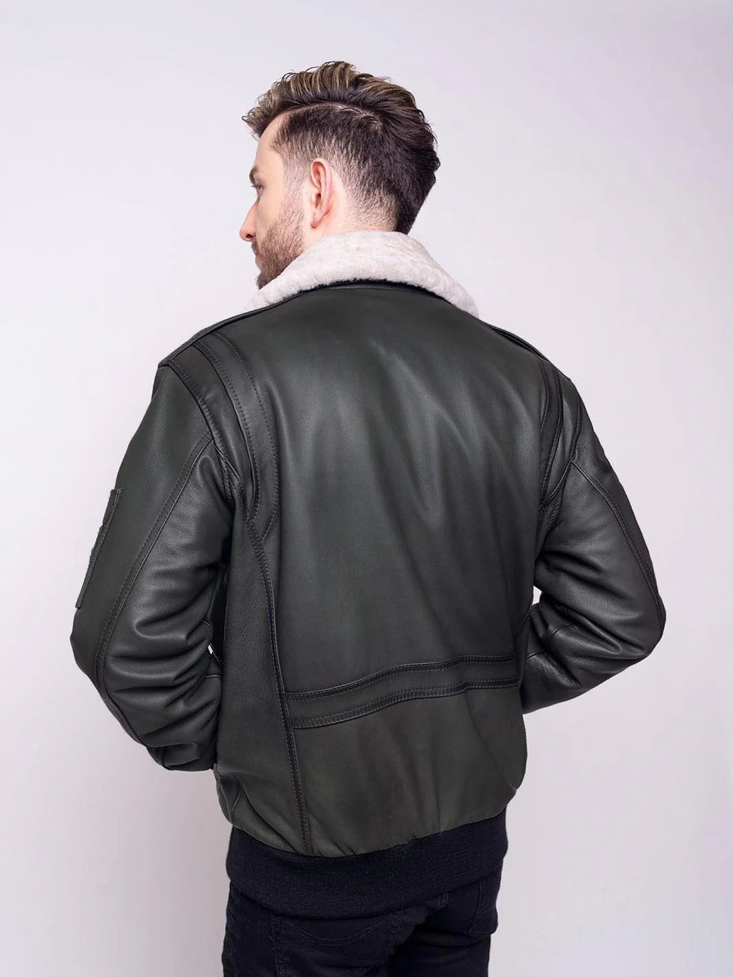 Green Leather Pilot Jacket - Insulated Tom Militare Green