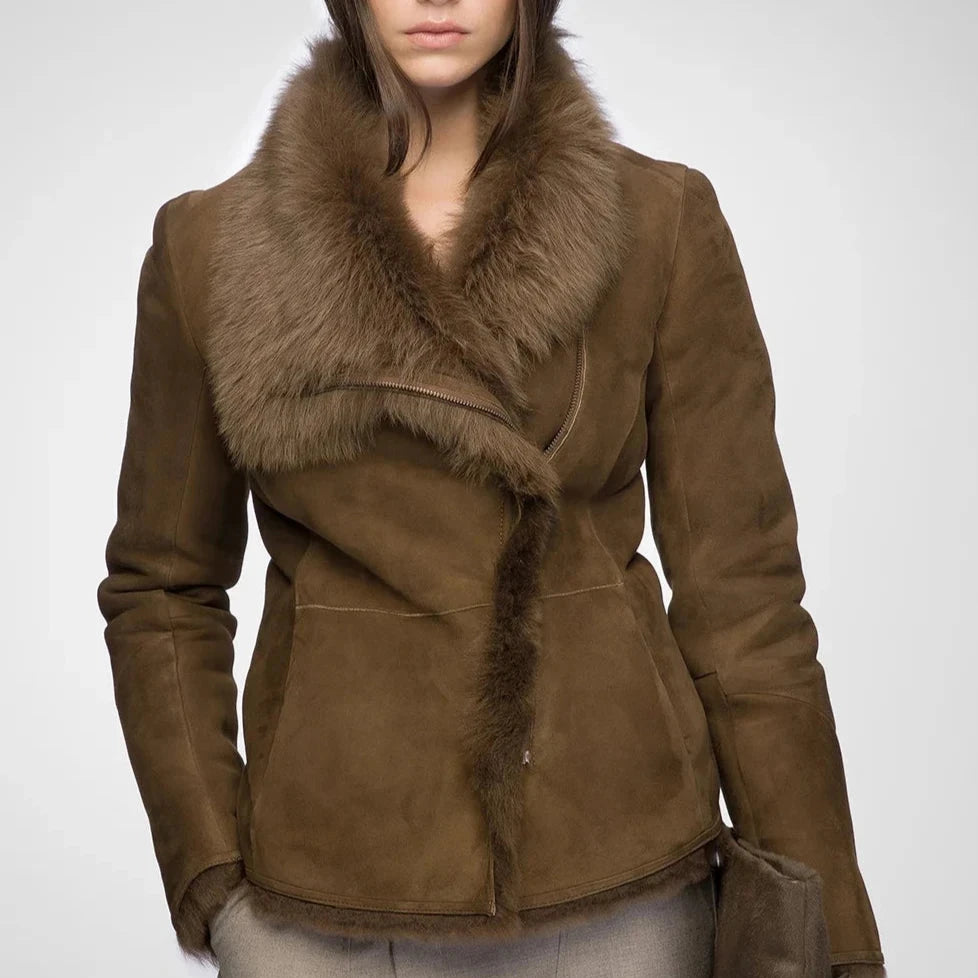 Discover the perfect blend of warmth and style with our tobacco shearling jacket. Crafted from high-quality shearling for durability and comfort, this classic piece adds a sophisticated touch to any outfit. Ideal for both casual and dressy looks. Shop now for premium quality and timeless fashion