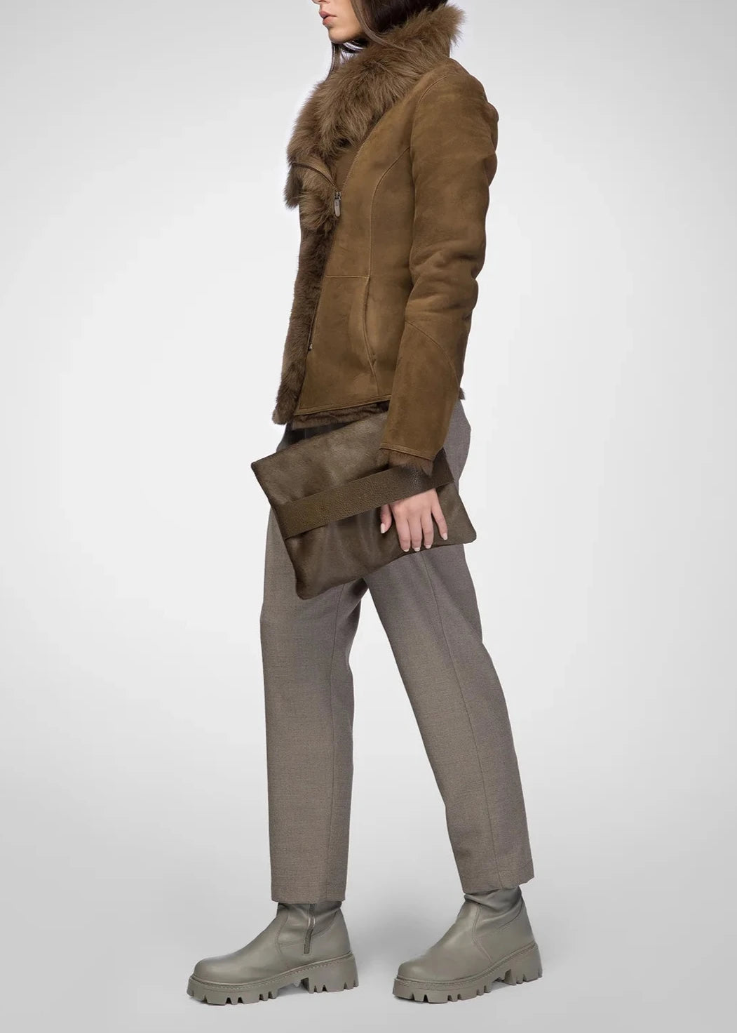• Care: Shearling requires special care. Typically, it should be cleaned by a professional who specializes in shearling or leather garments. Avoid getting it wet and store it in a cool, dry place.