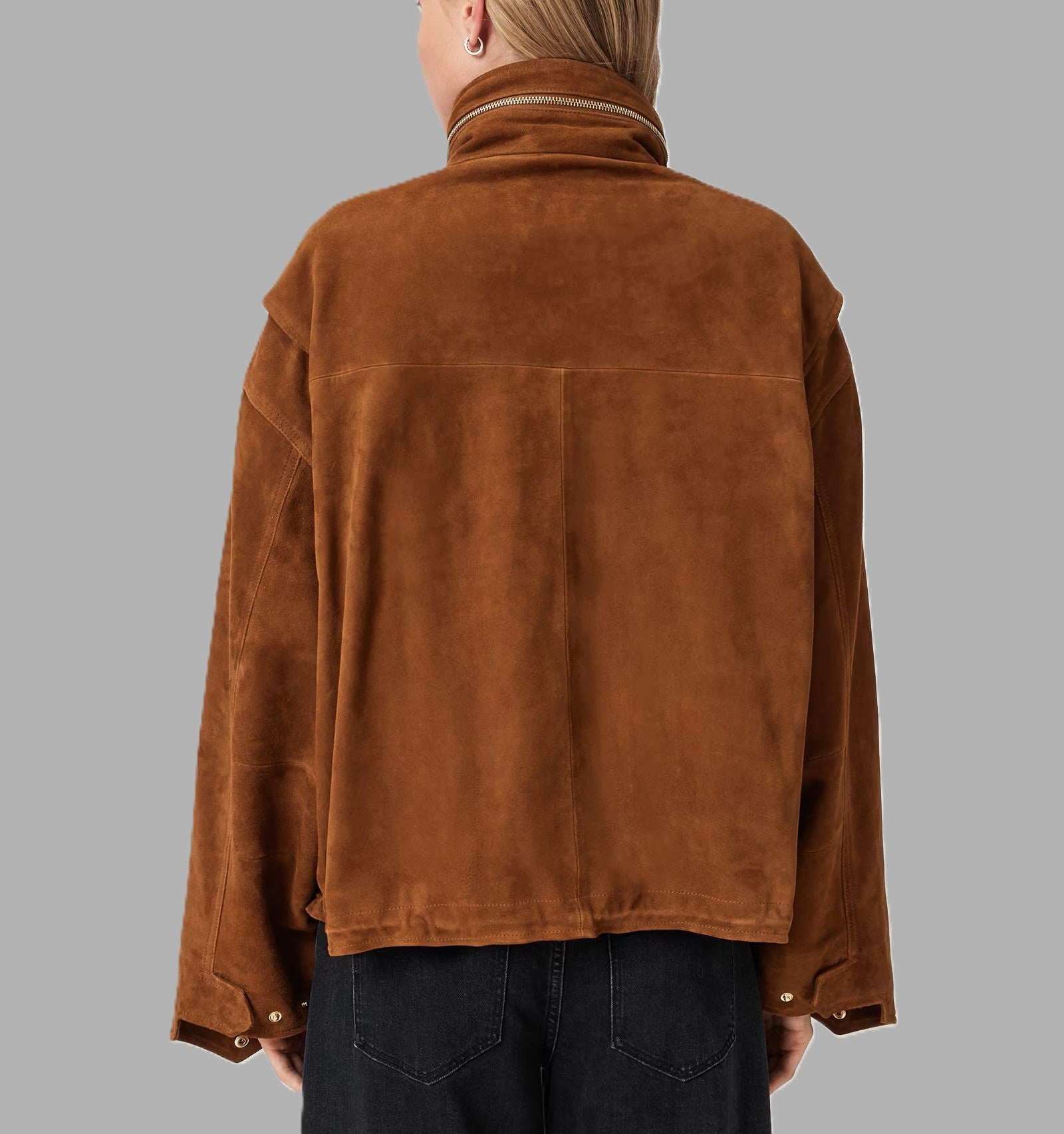 Elevate your outerwear collection with this women’s suede funnel neck jacket, crafted from premium goat suede for a soft, luxurious feel and lasting quality. Designed in a relaxed fit, this jacket features a modern cropped and boxy silhouette that delivers effortless style and comfort. The statement funnel neck adds warmth and structure, while functional chest patch pockets and an adjustable drawcord hem enhance everyday practicality.